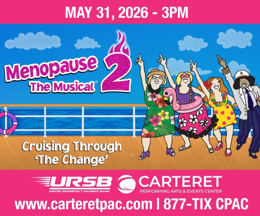 Join the fun and laughter as the URSB Carteret Performing Arts & Events Center presents Menopause The Musical 2: Cruising Through ‘The Change’® on Sunday, May 31, 2026 at 3 PM.